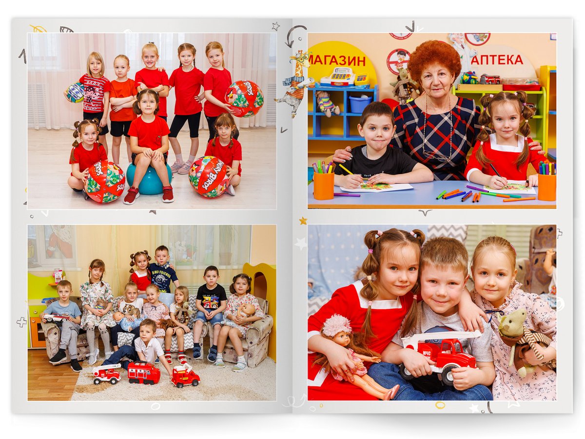 • Портреты всех детей и воспитателей на развороте или странице