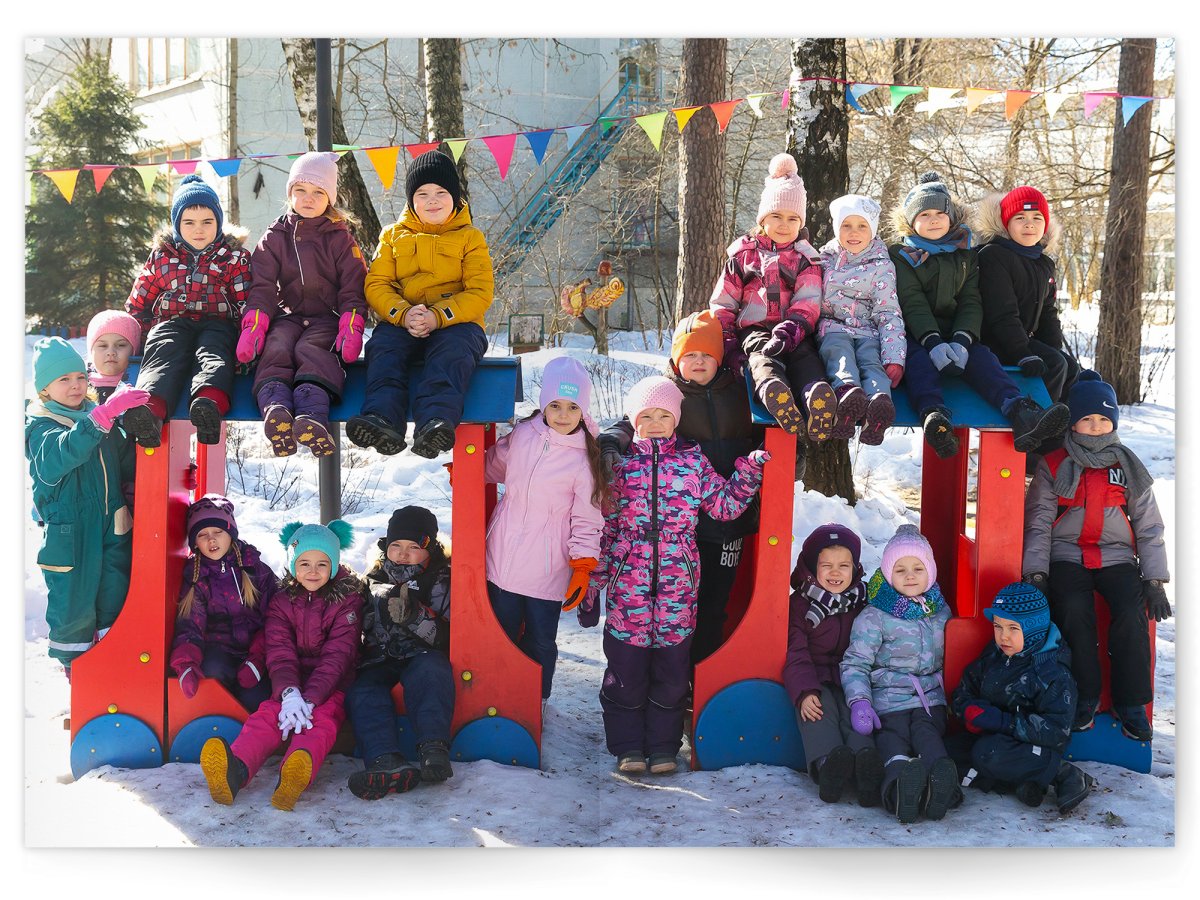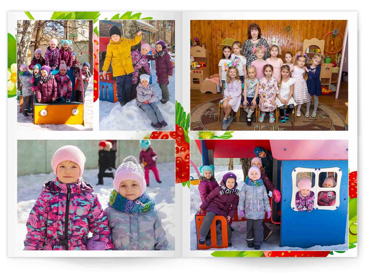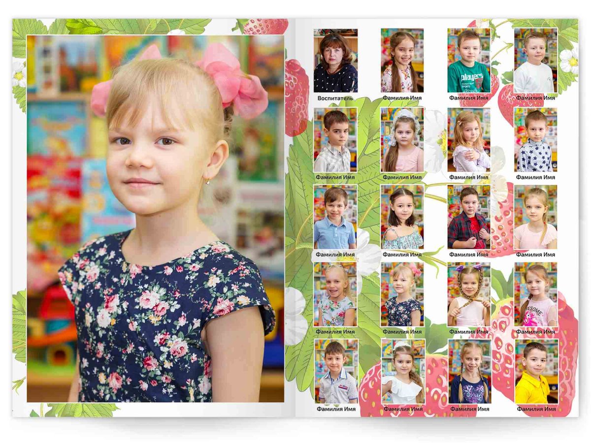 • Портреты всех детей и воспитателей на развороте или странице