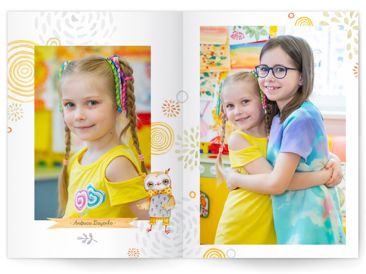 • Портреты всех детей и воспитателей на развороте