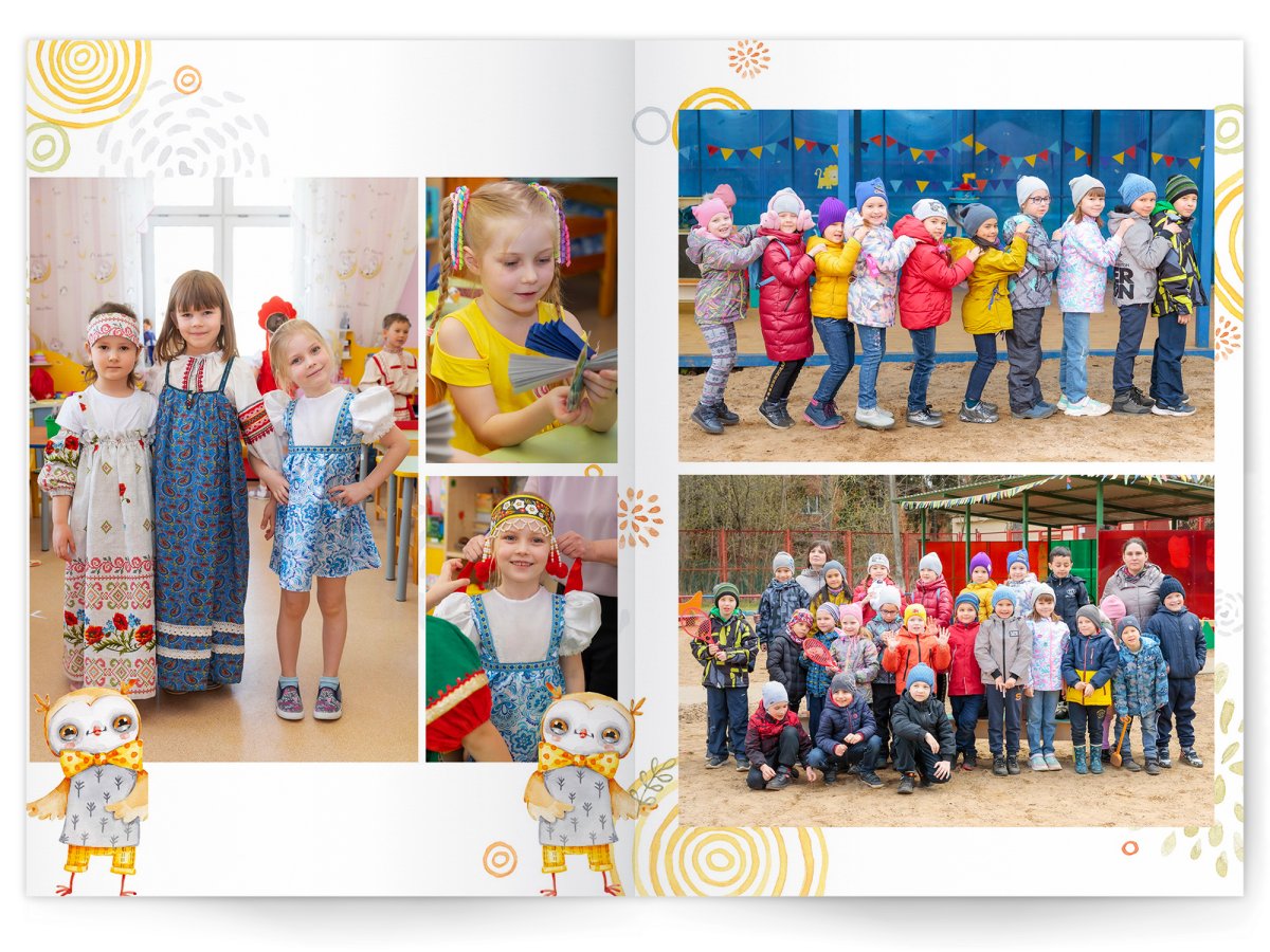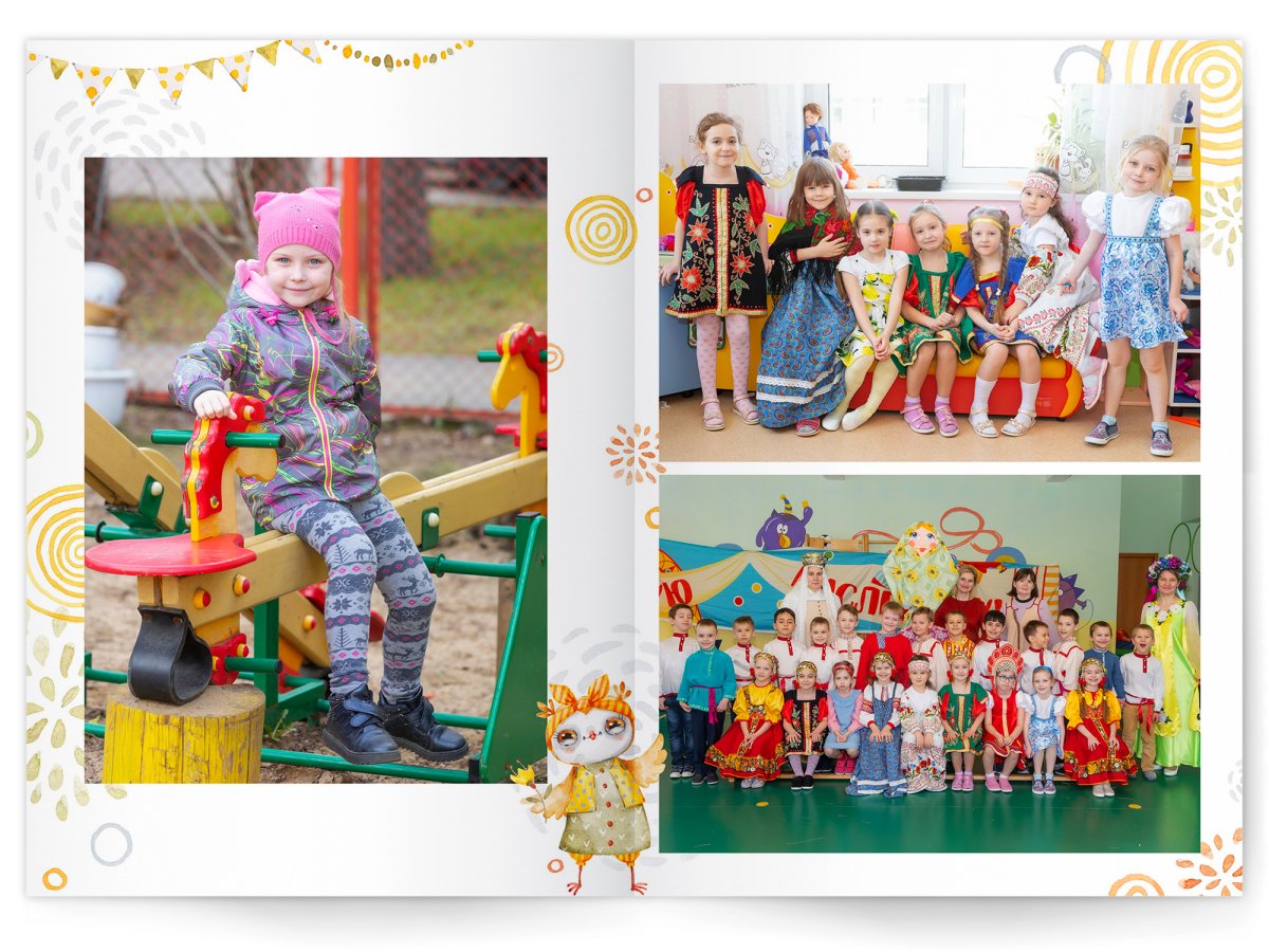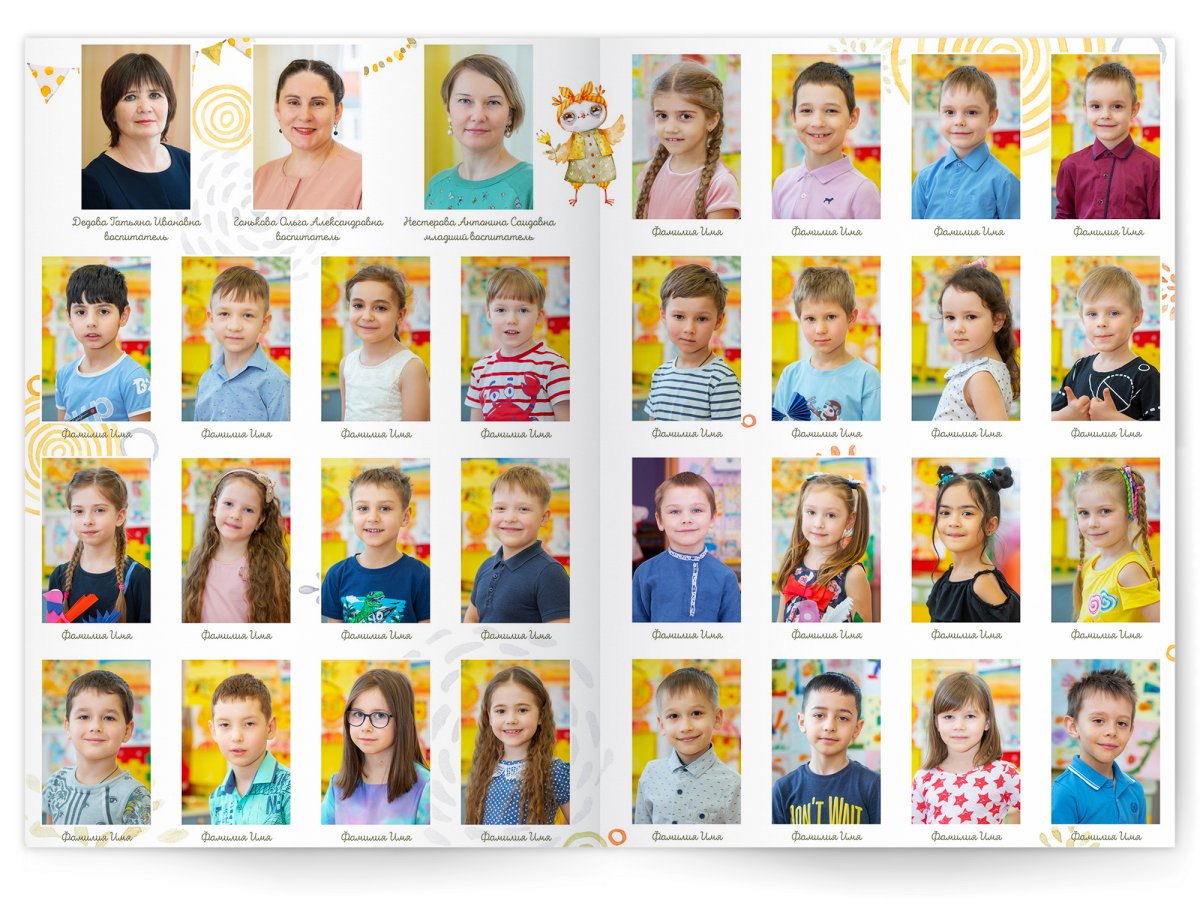 • Портреты всех детей и воспитателей на развороте или странице